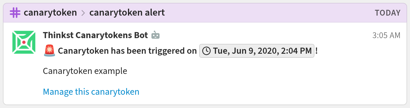 You're done! Your Thinkst Canarytokens notifications may look like this: